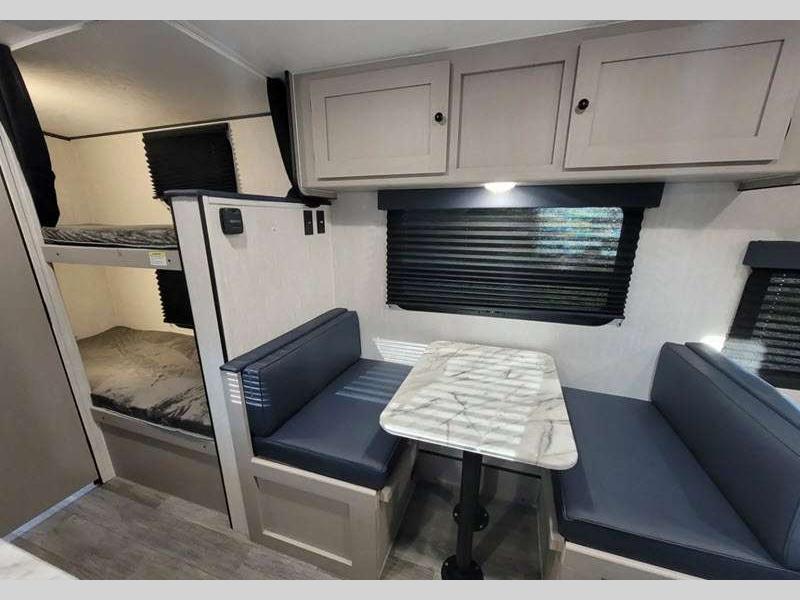 Sleeps 5 Length 20 ft 8 in Ext Width 7 ft Ext Height 10 ft 2 in Hitch Weight 416 lbs GVWR 4500 lbs Dry Weight 3196 lbs Cargo Capacity 1304 lbs Fresh Water Capacity 52 gals Grey Water Capacity 35 gals Black Water Capacity 35 gals Tire Size 16" Number Of Bunks 2 Available Beds Full Refrigerator Type Double Door Cooktop Burners 2 Shower Size 24" x 36" Number of Awnings 1 LP Tank Capacity 20 lbs. Water Heater Type Tankless AC BTU 15000 btu Awning Info 13' Power w/LED Light Axle Count 1 Number of LP Tanks 2 Shower Type Tub/Shower Combo Similar Floorplans