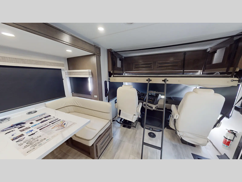 Sleeps 4 Slides 2 Length 34 ft 11 in Ext Width 8 ft 4 in Ext Height 12 ft 9 in Int Height 6 ft 10 in Exterior Color Carolina, Indigo, Poppy, Titanium Hitch Weight 5000 lbs GVWR 22000 lbs Fresh Water Capacity 80 gals Grey Water Capacity 42 gals Black Water Capacity 42 gals Furnace BTU 35000 btu Generator 6,000W Yamaha Fuel Type Gas Engine 7.3L V8 Chassis Ford F53 Horsepower 350 hp Fuel Capacity 80 gals Wheelbase 228 in Number Of Bunks 1 Available Beds King Torque 468 ft-lb Refrigerator Type Stainless Steel 3 Door Residential Refrigerator Size 18 cu ft Cooktop Burners 3 Number of Awnings 1 Axle Weight Front 8000 lbs Axle Weight Rear 15000 lbs LP Tank Capacity 24.5 Gal Water Heater Capacity 6 gal AC BTU 28500 btu TV Info LR 40" LED TV, BR 32" LED TV, Exterior 40" LED TV Awning Info 19' Encased Power with LED Lights Washer/Dryer Available Yes Gross Combined Weight 26000 lbs Shower Type Shower w/Seat Electrical Service 50 amp Similar Floorplans