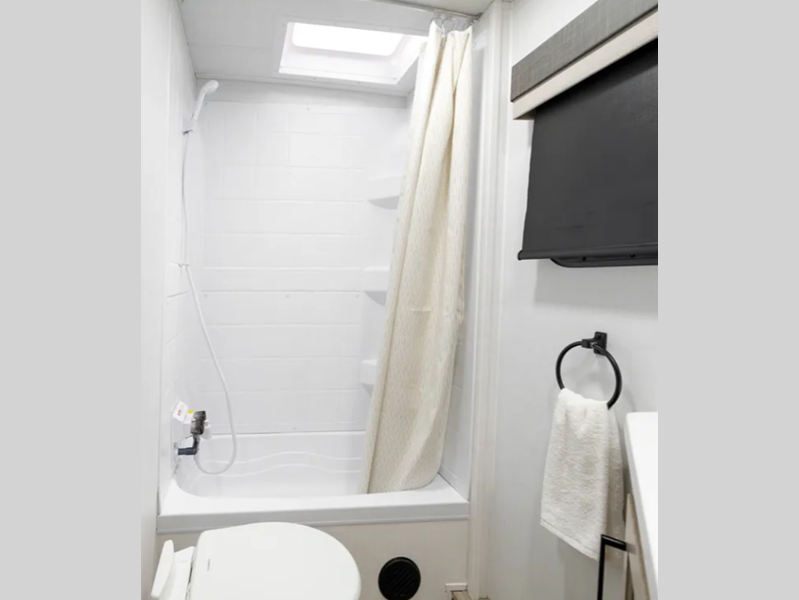Each travel trailer will have you feeling right at home with its hidden hinge cabinet doors, plus solid surface kitchen countertops and roller shades for added privacy. The Showermiser water saving system is sure to come in handy while camping over the weekend, and the TV with a stereo ensures you'll never go bored. Towing is made hassle-free thanks to the power tongue jack, along with Dexter Torflex axles and Goodyear Endurance tires.