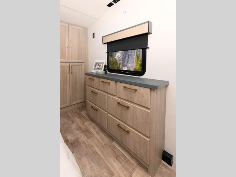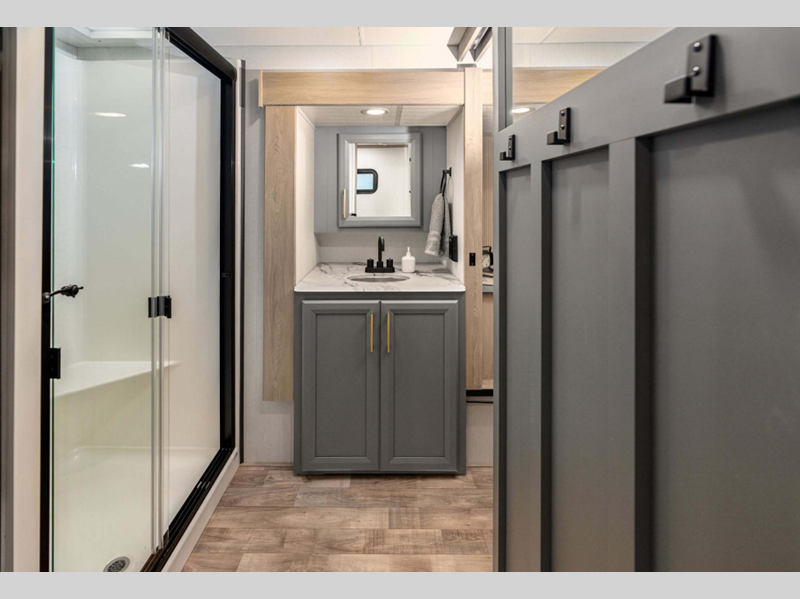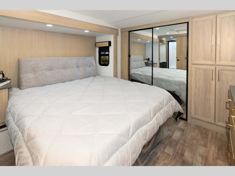 Sleeps 2 Slides 2 Length 31 ft Ext Width 8 ft Ext Height 12 ft 11 in Interior Color Mink Hitch Weight 1410 lbs GVWR 11500 lbs Dry Weight 8830 lbs Cargo Capacity 2670 lbs Fresh Water Capacity 76 gals Grey Water Capacity 50 gals Black Water Capacity 50 gals Tire Size 16" Furnace BTU 35000 btu Available Beds King Refrigerator Type French Door 12V Refrigerator Size 10 cu ft Cooktop Burners 3 Shower Size 42" x 30" Number of Awnings 1 Axle Weight 7420 lbs LP Tank Capacity 30 lbs Water Heater Type On Demand Tankless AC BTU 27000 btu TV Info LR 43" Smart LED TV Awning Info 16' Power w/LED Light Strip Axle Count 2 Washer/Dryer Available Yes Number of LP Tanks 2 Shower Type Shower w/Seat Electrical Service 50 amp Similar Floorplans