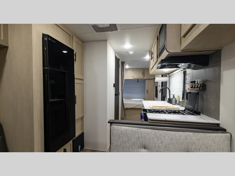 Sleeps 3 Slides 1 Length 28 ft 11 in Ext Width 8 ft Ext Height 11 ft 7 in Int Height 6 ft 10 in Hitch Weight 740 lbs GVWR 7600 lbs Dry Weight 5419 lbs Cargo Capacity 2181 lbs Fresh Water Capacity 39 gals Grey Water Capacity 30 gals Black Water Capacity 30 gals Available Beds RV Queen Refrigerator Type Residential Style Refrigerator Size 8 cu ft Cooktop Burners 3 Shower Size 24" x 40" Number of Awnings 1 LP Tank Capacity 20 lbs. Water Heater Type Tankless AC BTU 13500 btu Axle Count 2 Washer/Dryer Available Yes Number of LP Tanks 1 Shower Type Tub/Shower Combo Similar Floorplans