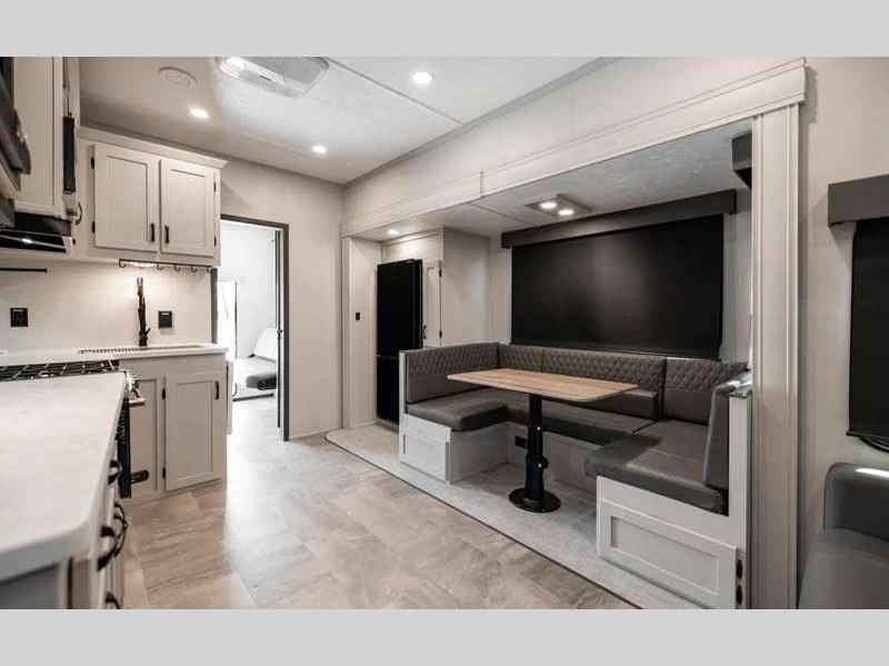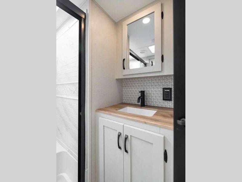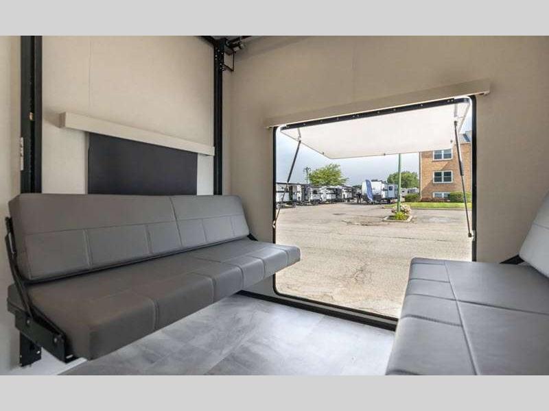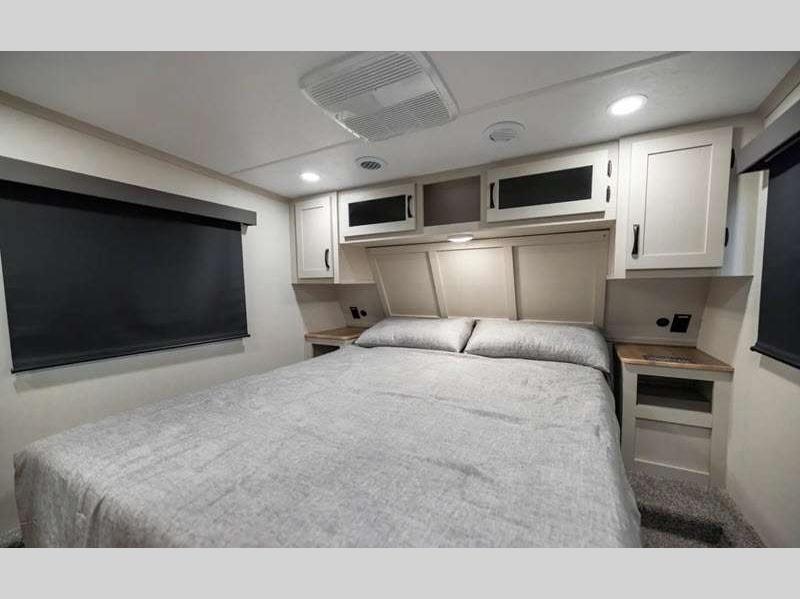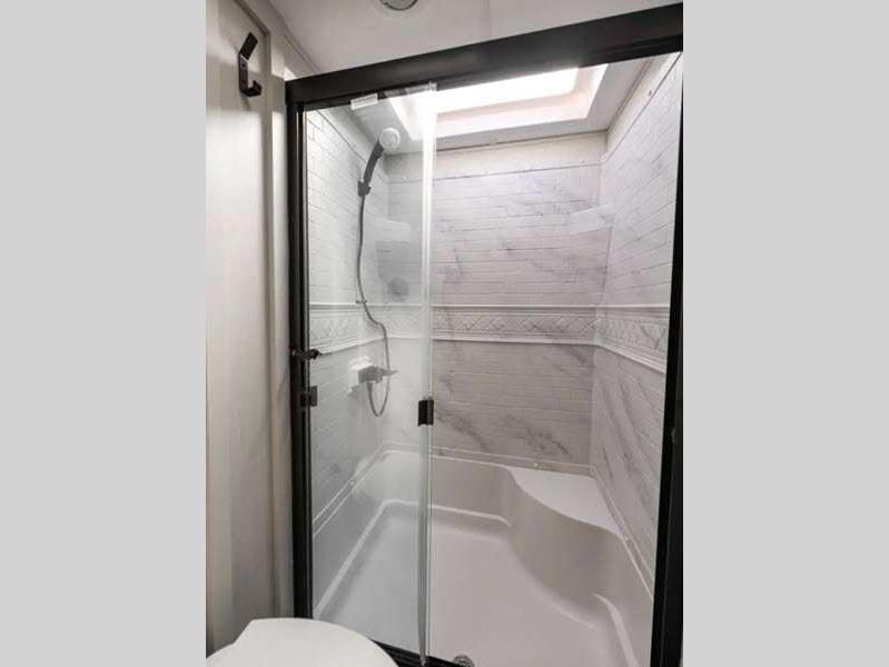 The design of the Tri-Tex powder coated frame technology is up to 5X more weather resistant, plus the vacuum bonded and aluminum framed sidewalls come with Azdel composite panels. There is also Road Armor suspension by Trail Air that will provide smooth towing from home to campground. Each model also includes slow rise blackout roller night shades, a large shower with sliding glass doors, and a residential-size mattress for all-around comfort!