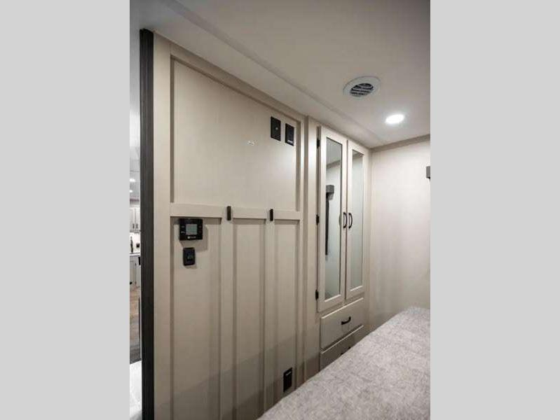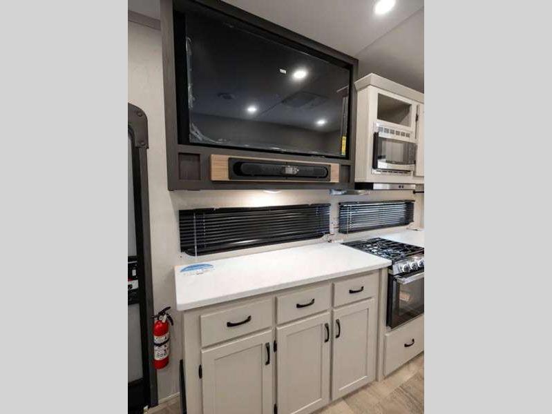 Sleeps 4 Slides 2 Interior Color Shimmer, Slate Available Beds Queen Refrigerator Type GE Stainless 12V Refrigerator Size 10 cu ft Cooktop Burners 3 Shower Size 34" x 34" Number of Awnings 1 Water Heater Type On Demand AC BTU 13500 btu TV Info LR 50" 4K Smart LED TV Awning Info 20' Electric w/LED Light Strip & One Hand Pitch Adjustment Axle Count 2 Shower Type Radius Electrical Service 50 amp Similar Floorplans