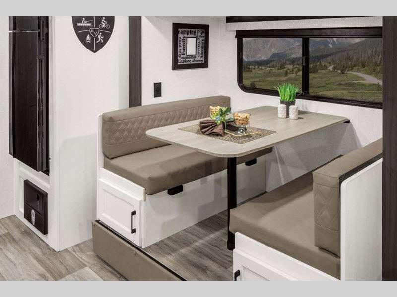Sleeps 3 Length 23 ft 3 in Ext Width 7 ft 6 in Ext Height 10 ft 5 in Int Height 6 ft 6 in Interior Color Chestnut, Fawn Hitch Weight 420 lbs GVWR 5800 lbs Dry Weight 4090 lbs Cargo Capacity 1710 lbs Fresh Water Capacity 36 gals Grey Water Capacity 30 gals Black Water Capacity 30 gals Tire Size 15" Furnace BTU 20000 btu Available Beds RV Queen Refrigerator Type 12V Refrigerator Size 8 cu ft Cooktop Burners 3 Shower Size 30" x 36" Number of Awnings 1 Axle Weight 3690 lbs LP Tank Capacity 20 lbs. Water Heater Type Tankless Awning Info 14' Axle Count 2 Number of LP Tanks 2 Shower Type Standard Solar Wattage 200 watts Similar Floorplans