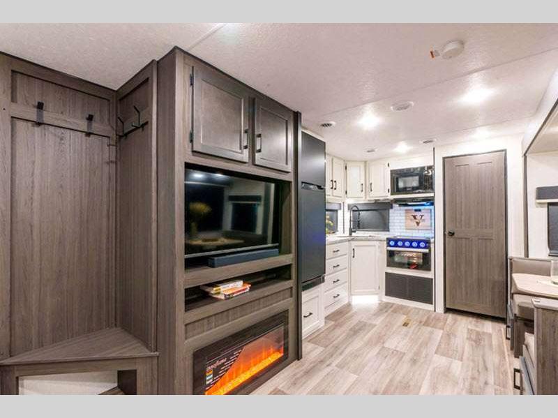 Sleeps 4 Slides 1 Length 30 ft 11 in Interior Color Chestnut, Fawn, Sufside Maple, Teak Hitch Weight 860 lbs GVWR 9260 lbs Dry Weight 6770 lbs Cargo Capacity 2490 lbs Fresh Water Capacity 45 gals Grey Water Capacity 64 gals Black Water Capacity 32 gals Tire Size 15" Available Beds Queen Refrigerator Type 12V Refrigerator Size 10 cu ft Cooktop Burners 3 Shower Size 30" x 36" Number of Awnings 1 Axle Weight 5910 lbs LP Tank Capacity 30 lbs Water Heater Type Tankless on demand TV Info LR 40" TV w/ swing arm, Ext. 40" Smart TV w/ swing arm Awning Info 14' LED Power Axle Count 2 Washer/Dryer Available Yes Number of LP Tanks 2 Shower Type Standard Electrical Service 50 amp Solar Wattage 200 watts Similar Floorplans