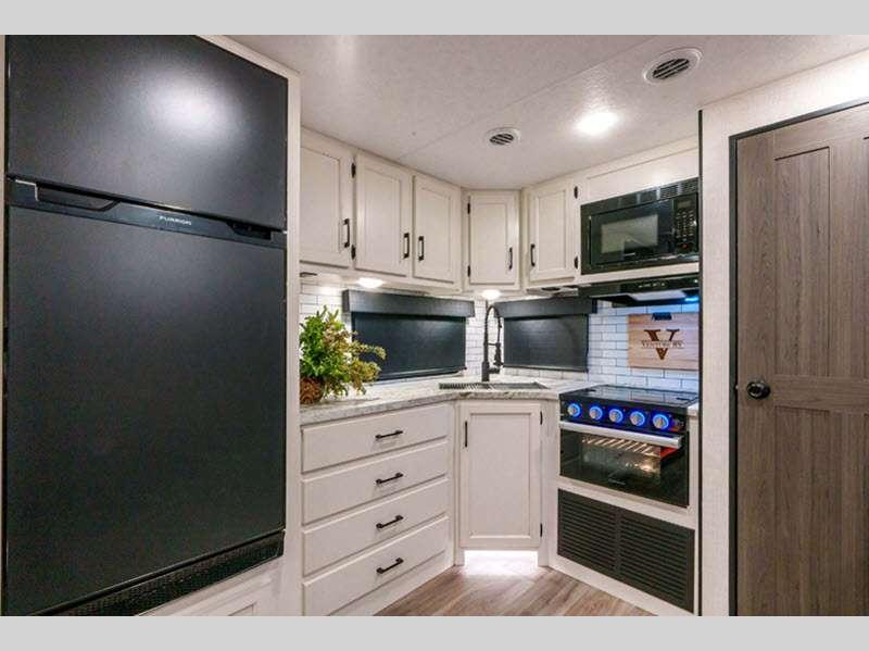 The lightweight Venture RV SportTrek travel trailers and fifth wheels are user-inspired with a purposeful residential kitchen and many storage opportunities!