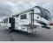Experience the pinnacle of luxury fifth-wheel living! Retreat to the serene bedroom, featuring an electric tilt king bed with drawers under the bed, spacious wardrobe, and washer/dryer prep. Enjoy entertainment on the 39” Smart LED TV and ample storage in the dresser. The gourmet kitchen is equipped with a pantry, 26 cu. refrigerator, convection microwave, and sliding table/desk for effortless dining and work-from-home convenience. The living room is a haven of relaxation, boasting a stunning 65” Smart LED TV, warm fireplace, theater seating, and double hide-a-bed sofas ideal for hosting guests with ease. Unwind in style in the full bathroom, featuring a dual sink vanity and ample storage. Also, enjoy the convenience of two entry/two exit doors. This fifth wheel is a masterpiece of comfort, style, and functionality, perfect for full-time living.