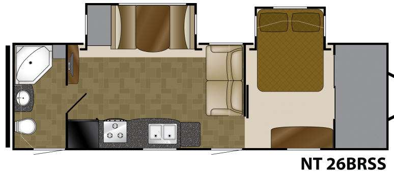 Double Slide North Trail King Slide Travel Trailer by Heartland w/Rear Full Bath Including Angle Shower, Linen Cabinet, Toilet, Sink, Private Entry, Ent. Center w/LCD TV, Pantry, Booth Dinette Slide, Refrigerator, 3 Burner Range, Dbl. Kitchen Sink, Sofa, Front Queen Bed Slide, Dresser, Front Full Wardrobe w/Sliding Doors and Much More! Available in Caliber Edition.
